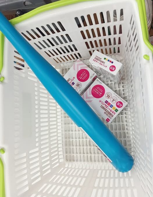 100均のバットでも、ゴムで何重にもグルグル巻きすれば、本格的なバットになるらしい。